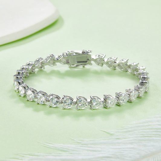 Heart-Cut Moissanite Tennis Bracelet in 925 Sterling Silver with 18K White Gold Plating