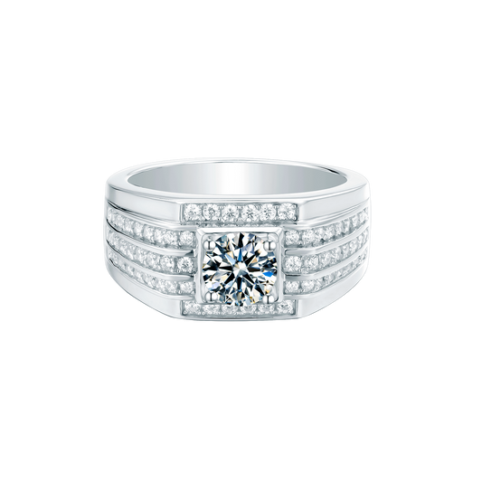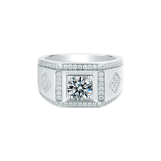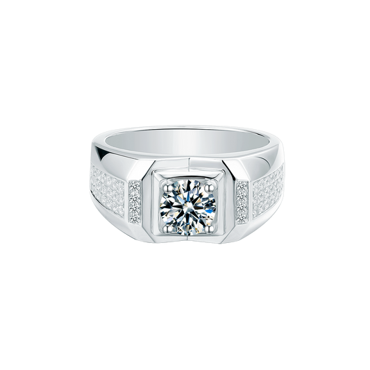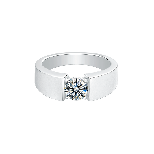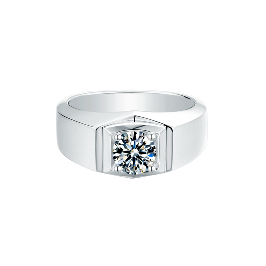 Single Moissanite Diamond 1CT Men's Ring – 925 Sterling Silver
