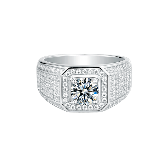 Luxury 1CT Moissanite Men's Ring in D Color VVS1, Set in 925 Sterling Silver