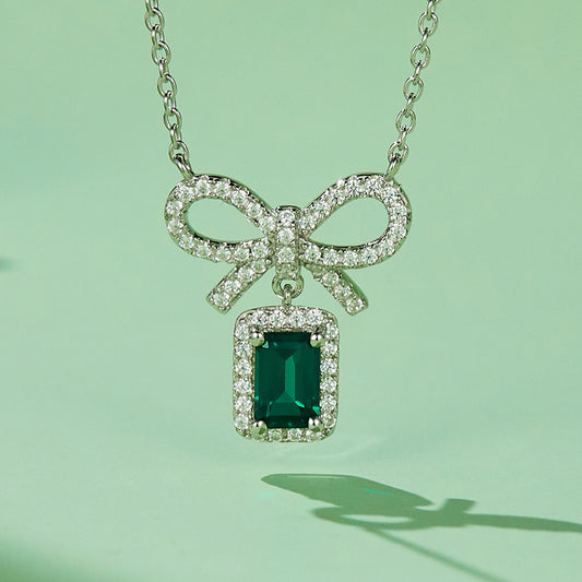 Bow and Heart Necklace with Moissanite in 925 Sterling Silver