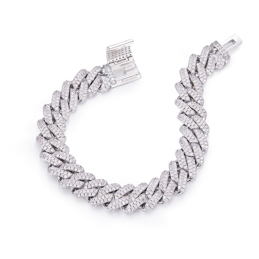 14mm Moissanite Cuban Link Chain – Full Round VVS Moissanite, 925 Sterling Silver