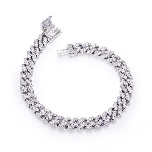 8mm Moissanite Cuban Link Chain – Full Round VVS Moissanite, 925 Sterling Silver