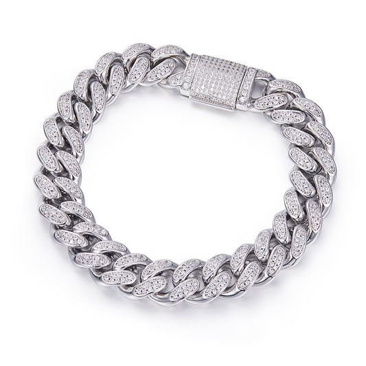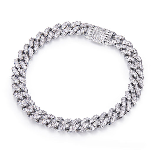 Men's Classic 12mm 7inch Cuban Link Bracelet with Full Round VVS Moissanite – 925 Sterling Silver