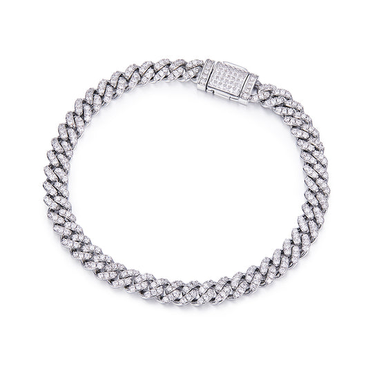 Men's 6mm Cuban Link Bracelet with Full Round VVS Moissanite – Sterling Silver