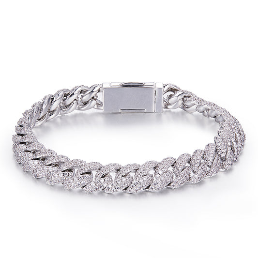 Men's Classic 10mm Cuban Link Bracelet with Full Round VVS Moissanite – 925 Sterling Silver