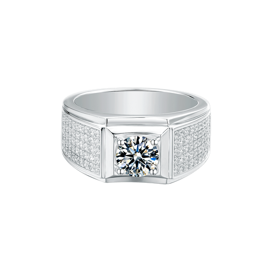 1-Carat D Color Moissanite Men's Ring in 925 Silver