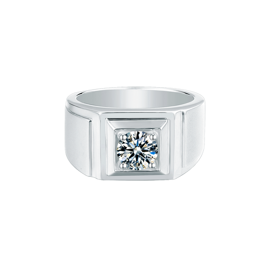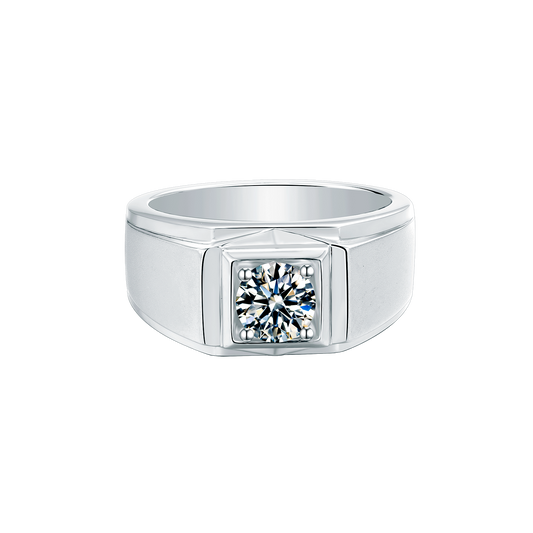 Single Moissanite Diamond 1CT Men's Ring – 925 Sterling Silver