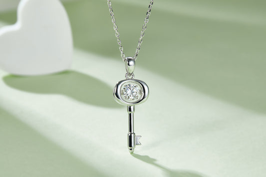 Heart Key Necklace featuring 0.5CT D Grade Moissanite in S925 Silver