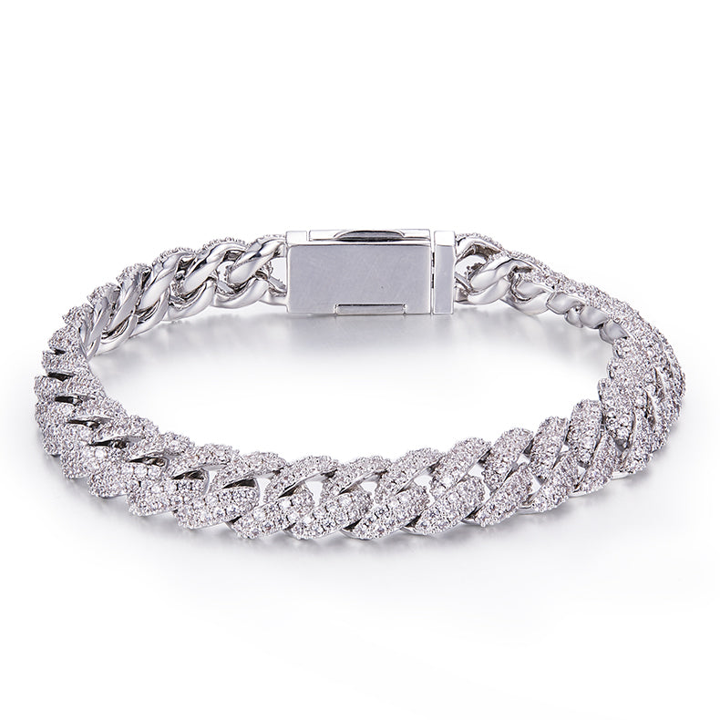 Product Description: Make a statement with the 8mm Moissanite Cuban Link Chain, designed for those who seek luxury and elegance. Crafted from premium 925 sterling silver, each link is embedded with full round VVS Moissanite stones that shine with exceptional brilliance and clarity. The 8mm width Cuban link design offers a bold, sophisticated look perfect for elevating any outfit.