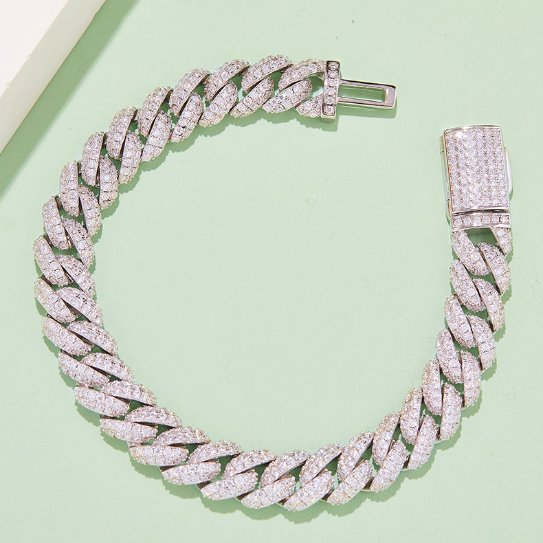 10mm Moissanite Cuban Link Chain – Full Round VVS Moissanite, 925 Sterling Silver