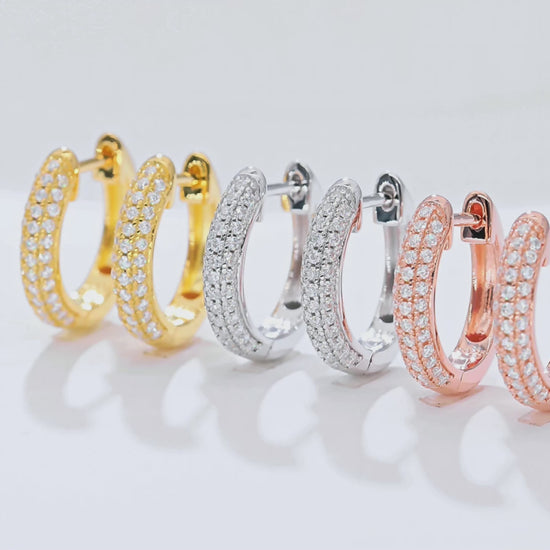 Add a touch of brilliance with our Half Three Row Moissanite Hoop Earrings. Set with a total of 0.37 carats of sparkling Moissanite stones, these hoops offer timeless elegance with three rows of radiant gemstones, perfect for both casual and formal occasions. Their sleek design ensures that you shine day or night.
